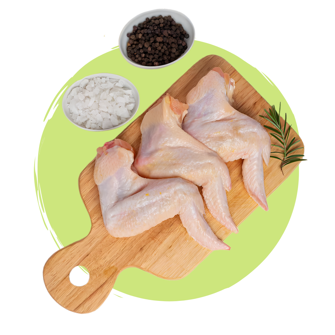 Ailes et épaules de poulet nettoyées au citron et au vinaigre, découpées et prêtes à cuire. Idéales pour grillades, plats familiaux ou recettes traditionnelles. Poulet préparé maison, livré frais à domicile.
